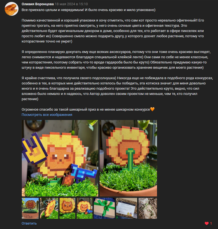 У коллаба были призовые места. Первое которастение подарили победителю, выбранному случайным образом, а второе – по выбору судей. Кроме того, мы отправили наш брелочек самому юному участнику – пятилетнему Максимке.