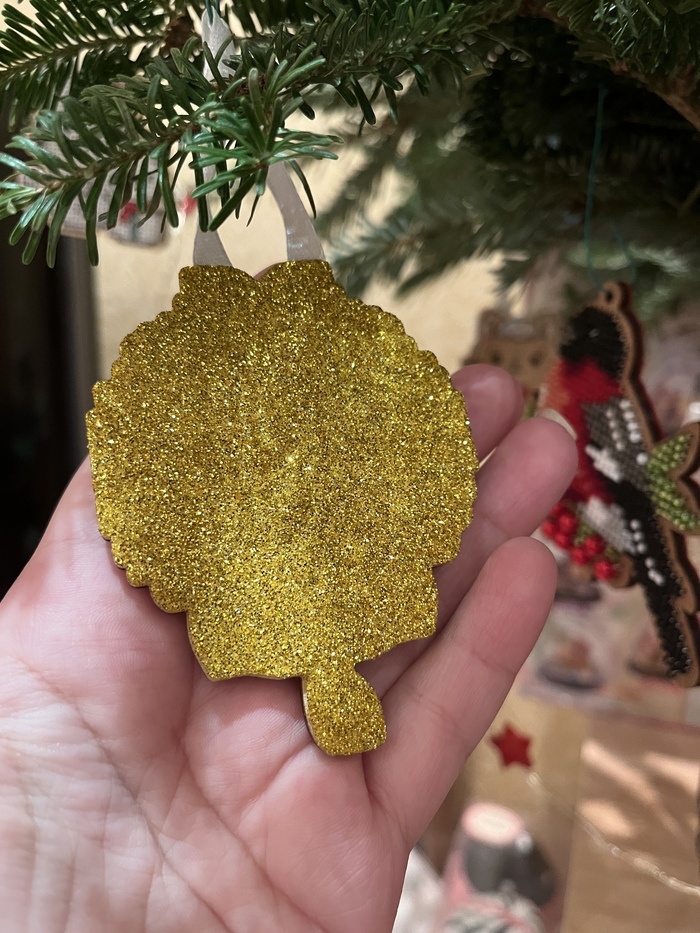 Еще один житель на ёлочке: деревянно-пластиковый человечек. Лицевая сторона на деревяшке.