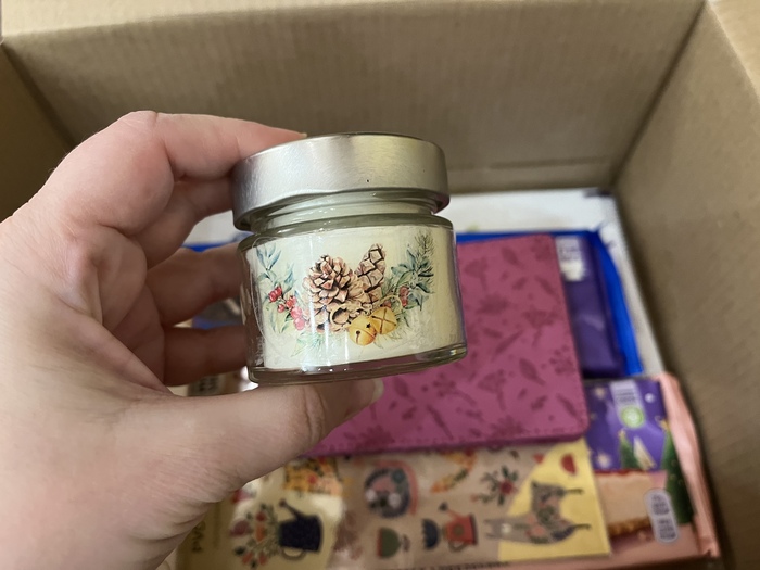 А еще там чудесная алмазная мозаика (ну люблю я монотонные хобби, что поделать!), прикольные носки, зачетный блокнотик, новогодняя кружка с необычным бархатным покрытием, еще вкусняшки и открыточка с магнитиком (у меня уже целая коллекция АДМ-магнитов, и этот займёт почетное место на холодильнике!)