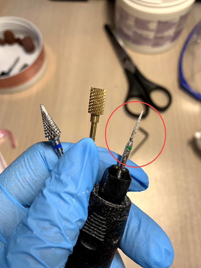 Поэтому беру зеленую фрезу с алмазной крошкой и дорабатываем фигурку, шлифую круговыми движениями, не сильно надавливая на пластик, иначе есть риск оставить пропилы или неровности в виде ямок.