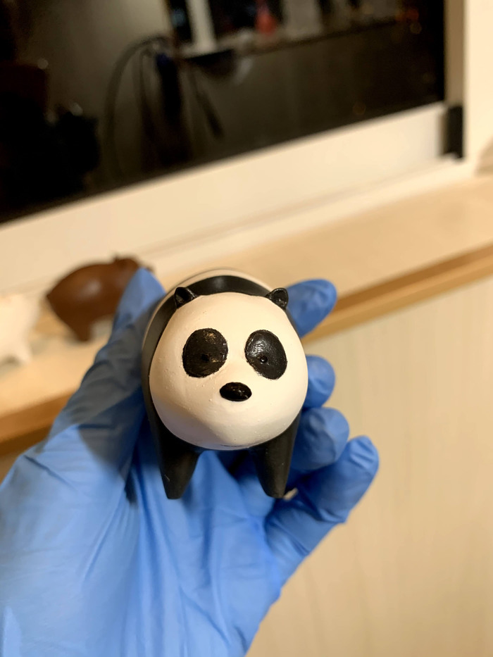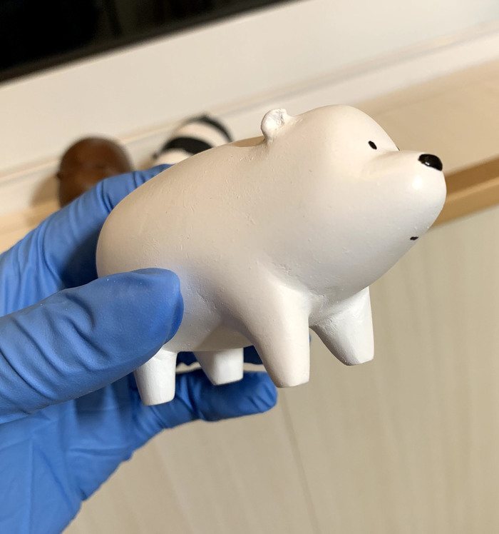 По началу взяла в леруа-мерлене грут-эмаль для пластика, оказалось ошибкой. Гризли покрасила грунт-эмалью, грунтовка хорошо легла, а вот с Белым и Пандой почему-то не получилось ровно положить грунтовку. Она получилась липкой, не смотря на то, что я хорошо просушивала каждый слой, в общем, походу я из лиги рукожопов, и т.к. у меня не было ничего под рукой из растворителей чтобы по-быстрому снять грунтовку (в апреле был карантин, и мало кто работал, и поэтому не купила). В итоге, матерясь, отскоблила грунт-эмаль с Белого и Панды, еще раз прошлась пилкой, и уже в мае месяце спокойно купила белую акриловую грунтовку и задула через аэрограф, очень хорошо легла грунтовка. Кстати, забегая вперед, скажу, что медведи случайно оказались на солнце, и почему-то именно только у Гризли, который был окрашен грунт-эмалью, появились пузыри на поверхности. Так что скупой платит дважды...Но это опыт)