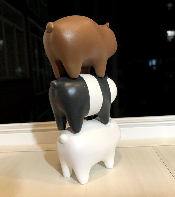 Самое первое ,что мне захотелось у себя иметь, т.к. в продаже не встречала фигурок, это мишки из обалденного мультика "We bare bears".