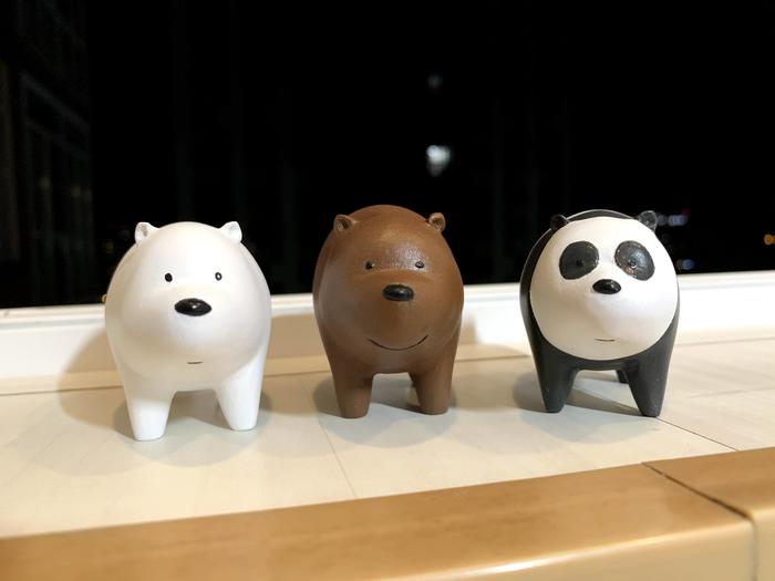 Теперь у меня есть 3 главных персонажа из We bare bears!)) Да, медведи получились не идеальными, есть косяки, но все эти свои ошибки я учла в следующих постобработках фигурок.