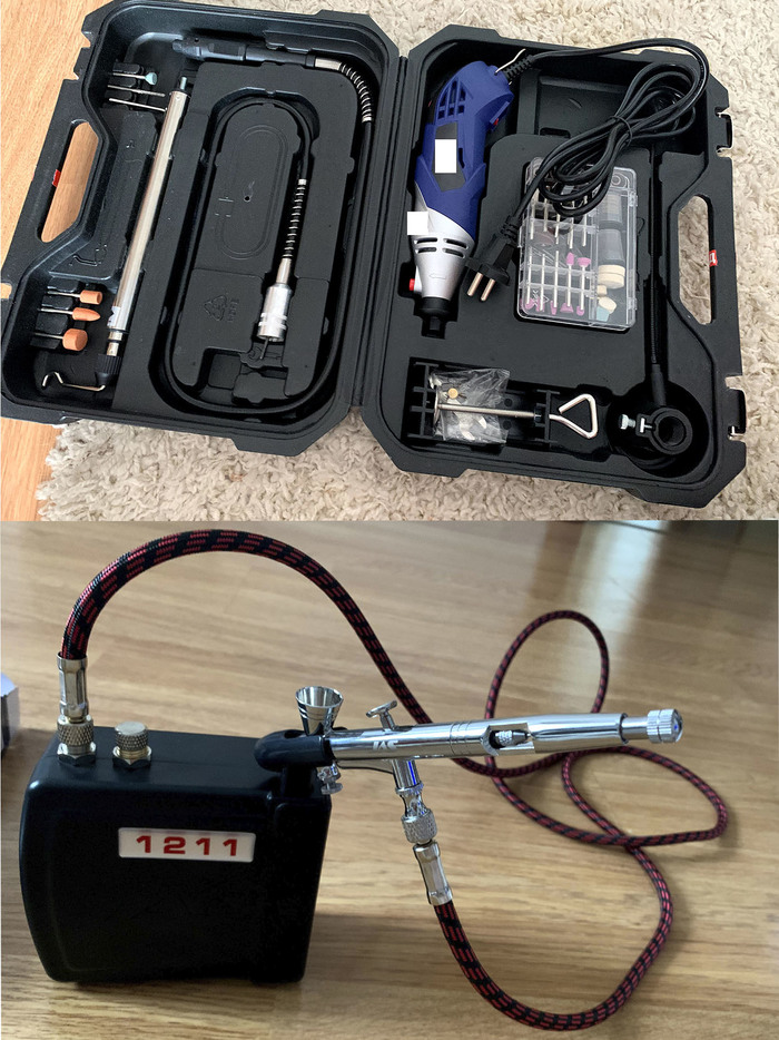 В общем, берем в руки гравер с фрезами. Желательно наличие у гравера мин. кол-ва оборотов - 3000. Кстати это вообще отдельная история. Я вместо того, чтобы купить на подаренные деньги на д.р., какой-нибудь девчачий подарок, типа любимые духи или кулончик, купила гравер и аэрограф с компрессором XD Ну шикарно же) Чего мне для счастья еще надо?!