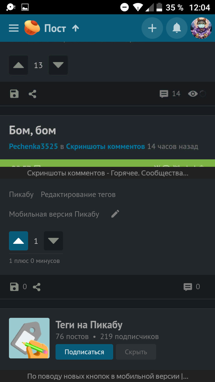 Как я вижу, на браузерных версиях Пикабу теперь единение кнопок – в мобильную версию принесли новые кнопки образца десктопа. Но у меня вопрос: а теги-то тут редактировать где? Пост тот новый, дня ещё ему нет. @SupportTech, это, скорее всего, к вам.