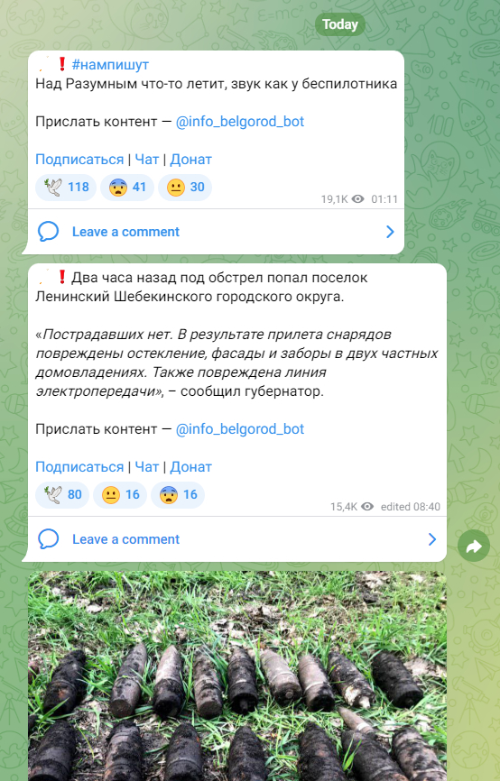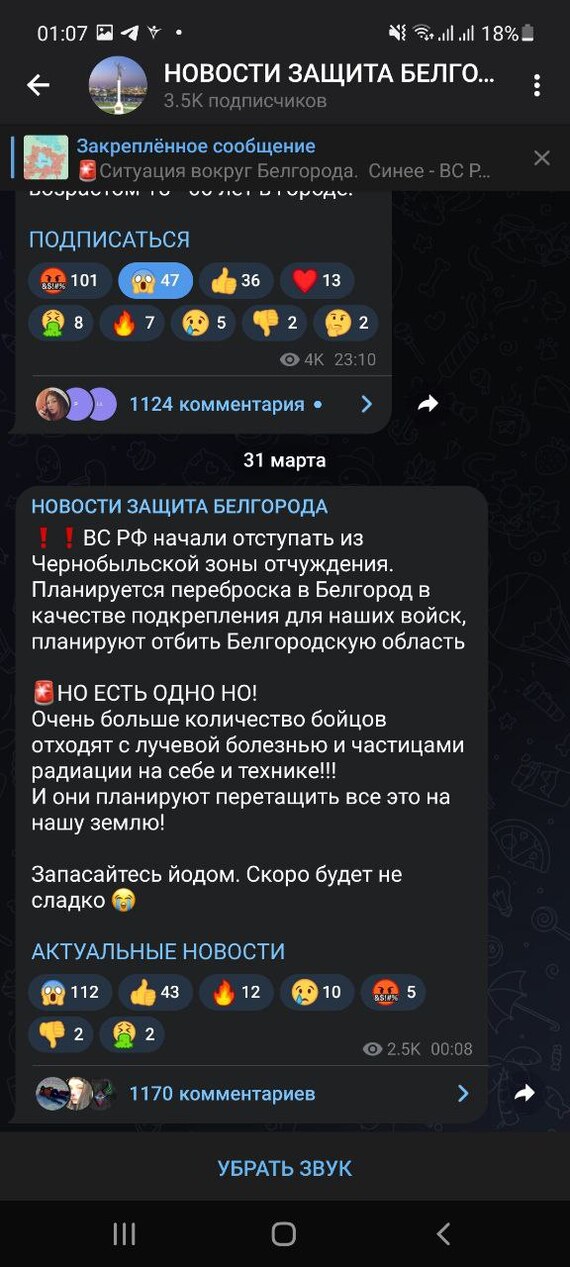 Но я то подписан на канал с марта прошлого года, а подписался потому что назывался канал "НОВОСТИ Защита Белгорода", и там было разыграно целое реалити шоу с образованием БНР(белгородской народной республикой) и вбросы про наступление армии ВСУ, которые раскидывались по локальным пабликам в комментариях ВК: