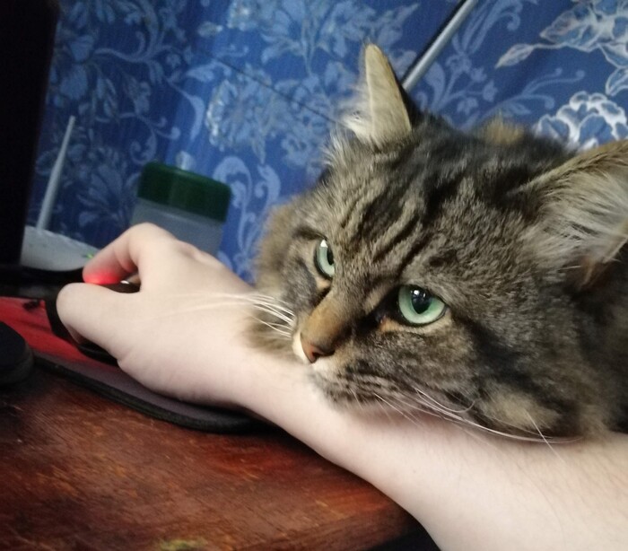Повоевав, оставил на руке пару легких царапок, спрятался в укромное место