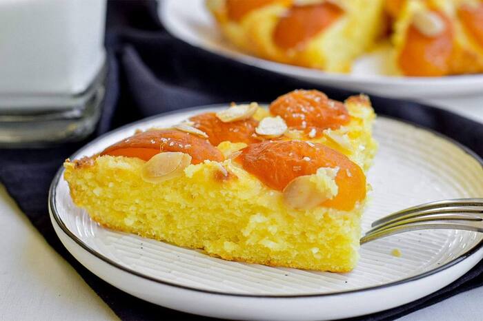 5. Абрикосы разрезать пополам, извлечь косточки и аккуратно уложить половинки абрикосов сверху на творожную основу.