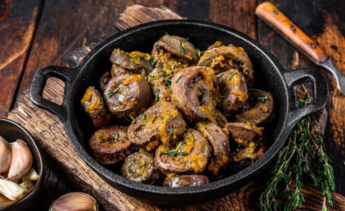 2. Отварите сердечки примерно час или больше, чтобы они стали мягкими. Немного остудите в бульоне и нарежьте кусочками.