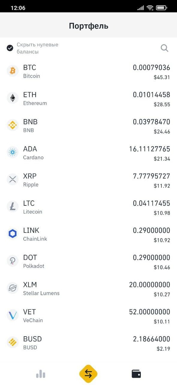 Как вы знаете из моих прошлых постов, я решил формировать криптопортфель, а так же обновил видеокарту в домашнем пк и отправил ее майнить. Так что теперь криптопортфель я буду пополнять не со своего счета рублями, а с того, что удастся намайнить. За 8 дней получилось 32$ с лишним и они отправились на пополнение криптопортфеля. На данный момент его размер 186,7$. Минимальные докупки идут по 10$, поэтому не очень ровно получается пополнять каждую валюту, пока докупил только BTC, BNB и ADA. Остальные ждут своей очереди.