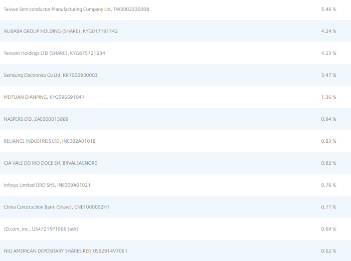 8) Фонд на развивающиеся рынки. Комиссия фонда 0,69%. К развивающимся рынкам относятся Россия, Китай, Бразилия, Мексика, Южная Африка, Индия... В этом фонде сделан очень большой упор на Россию, аж 27,2% и при этом довольно мало компаний. Для кого-то это плюс, для кого-то минус. Я планирую пока на 15% от капитала его взять, но со временем думаю его долю уменьшу.