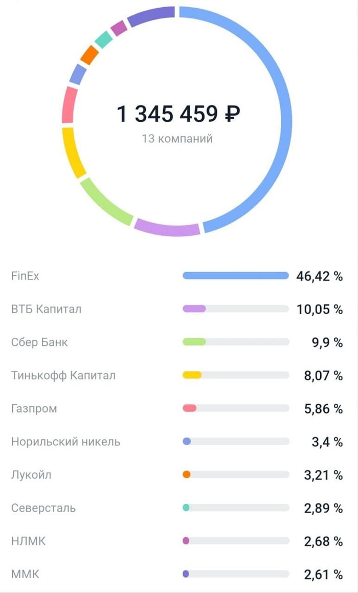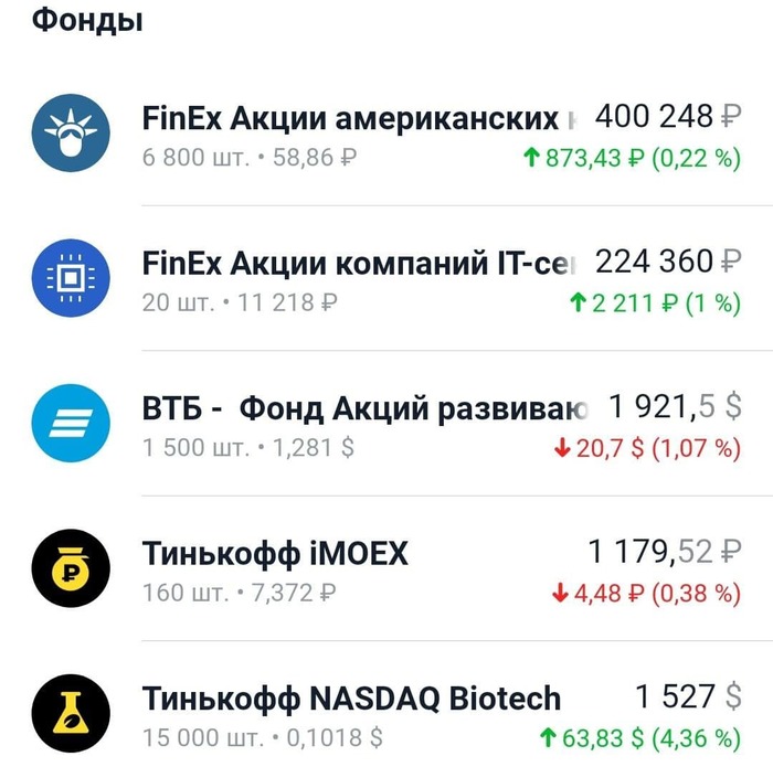 На данный момент весь мой портфель на ИИС состоит из фондов Тинькофф. Портфель у ВТБ я закрыл и планирую перевод денег на обычный брокерский счет в Тинькофф.