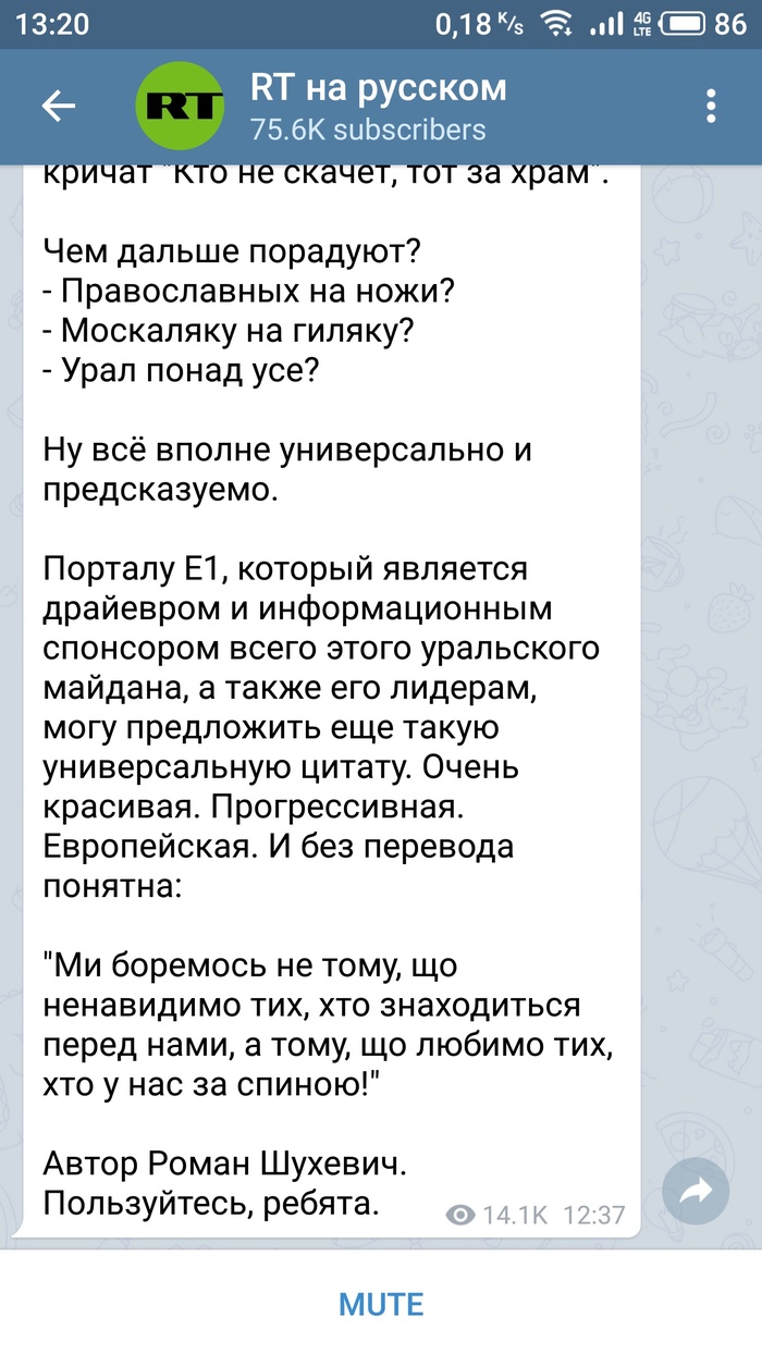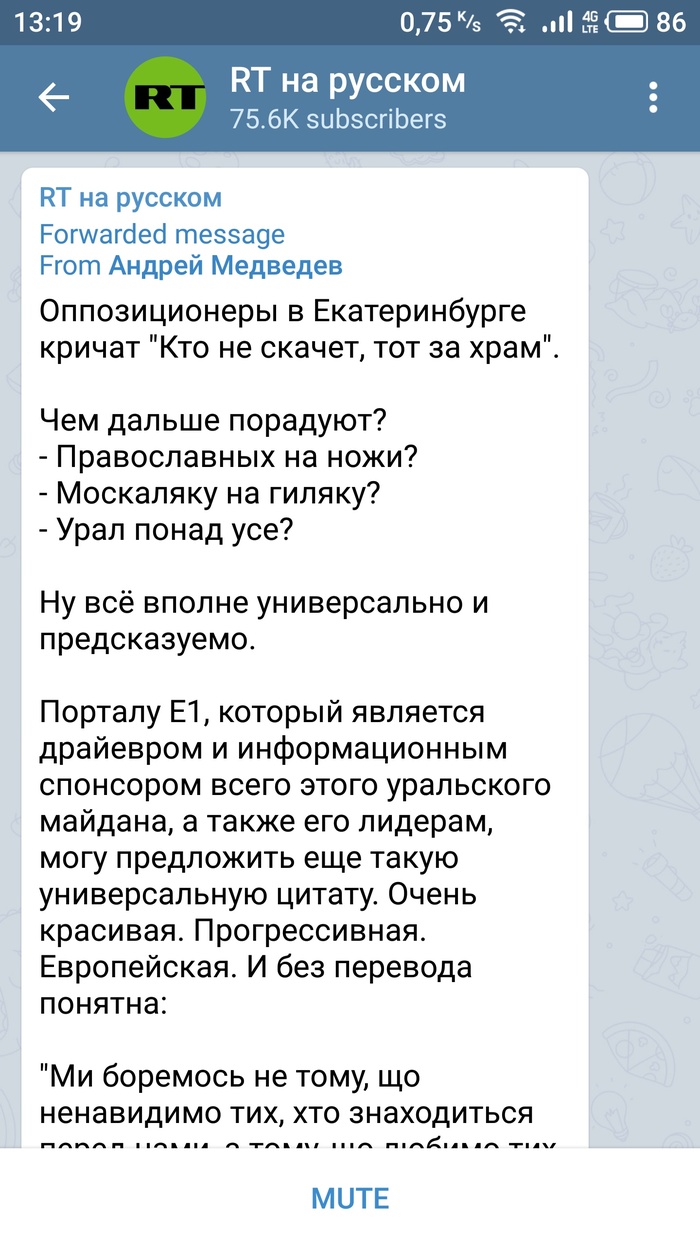 Этого конечно всего лишь репост с канала одного эталонного "охранителя", но с учётом того что это чуть ли не единственное упоминание о известных событиях на всём канале, то сомневаться в намерениях Russia Today не приходится.