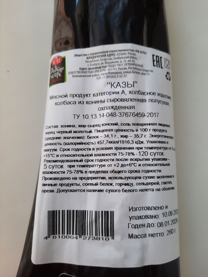 Республика Татарстан. Традиционная татарская колбаса "Казылык", и никаких ебучих халялей в маркировке.
