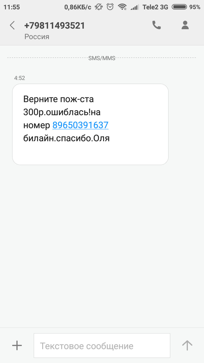 Charley1988 Баяны На волне постов про смс мошенников. Сегодня и до меня очередь дошла 7 лет назад В 04:30 приходит смс Сразу "звоночек", у меня Теле 2, и уже начитан историй с Пикабу. Спустя 22 минуты приходит смс Ольги. Скриншоты мои, тег моё. Будьте бдительны Показать полностью 2 [моё] Попрошайки Мошенничество Длиннопост СМС Скриншот