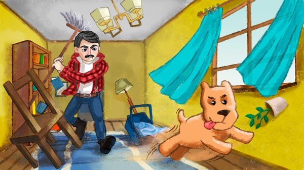 - Для дяди Джорджа игровой процесс строится вокруг уборки и наведения порядка за своим псом, используя верный инструмент - швабру. Инструмент со временем приходит в негодность от грязи и требует ополаскивания его в ведре с водой. Сполоснув швабру дядя Джордж готов вновь сражаться за порядок! Победить проказного питомца можно лишь одним способом - после тщательной отмывки дома, поймать его в свои руки.