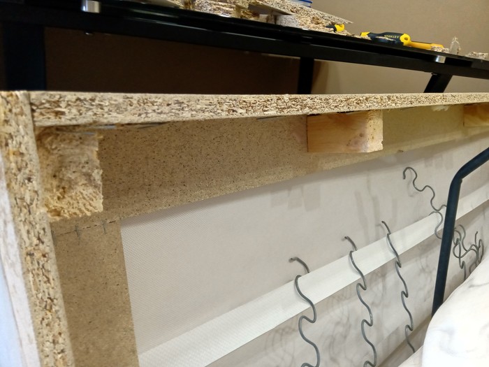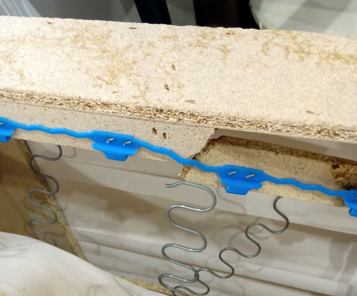 все стяжки крепились к тонкой дсп, которая обломалась почти везде, а все потому что поперечные бруски были лишь по углам и один в центре