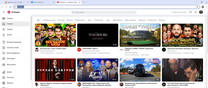 И последнее. Вернемся к началу. Зашли в ВК. Потом, нажав у себя "Видео", оказались в ВК Видео. Мы видим звезд из тусовки Азамата Мусагалиева и Нурлана Сабурова, который больше не выкладывает ролики в ВК.