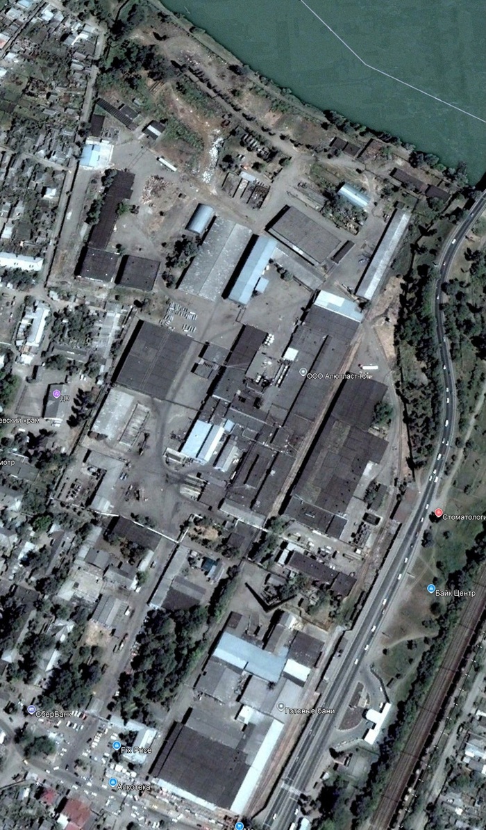 А вот так комбинат его территория, выглядет сейчас: