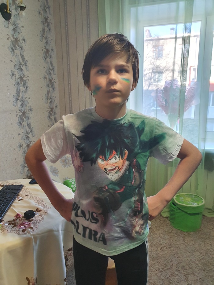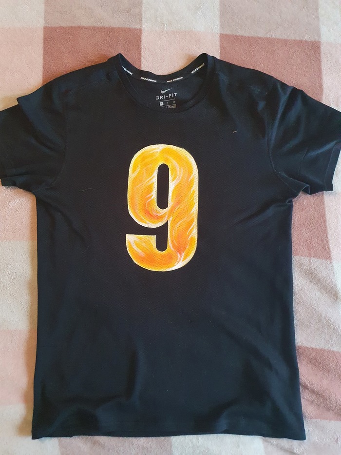 Делалось для игры в волейбол. Спереди 9 ка сзади фамилия и арт. Арт неизвестного мне художника.