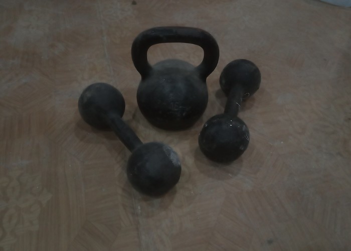 Купили с женой квартиру. Состояние довольно запущенное, но ничего - глаза бояться, руки ремонт делают. В ходе разбора старого встроенного шкафа было обнаружено: гиря весом 16 кг, две гантели по 8 кг каждая, медаль ветерана труда и рабочий перфоратор в кейсе (был разобран, вычищен и смазан) Перф особенно порадовал - работы ему ещё море))