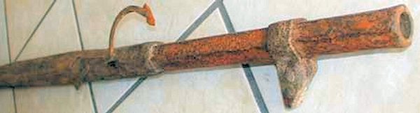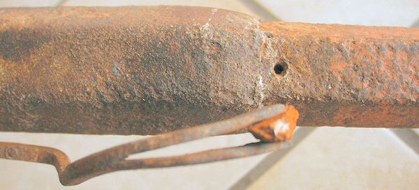 Но каков же материал этого «цепа из Дамиетты»? Если дерево, то для оружия первого удара он при таких пропорциях слишком лёгок, даже против доспехов XIII века; к тому же кончик била на иллюстрациях погружён в воду — и отнюдь не проявляет тенденцию всплывать. Скорее всего, чистое железо; обе секции, выглядящие практически одинаково, — кованые. Высококачественная сталь тут ни к чему, так что даже с учётом технологических возможностей XIII века получается не слишком дорого, зато очень смертоносно.