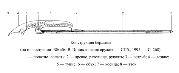 Столь тяжёлых алебард на свете не бывало вовсе, да и самые огромные мечи-двуручники из числа боевых не дотягивают до этого веса примерно килограмм, чаще полтора. Оговорка насчёт боевых важна: парадный или тренировочный двуручник бывал на четверть, даже на треть массивнее реально воевавших «коллег». Очень может быть, что и вышеупомянутые смертобоища применялись не столько в бою, сколько перед ним для подготовки бойцов. Для Средневековья такой метод вполне типичен.