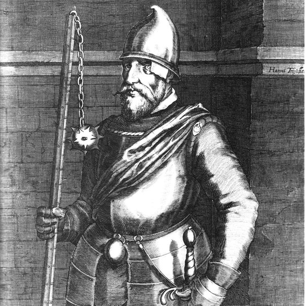 Император Максимилиан I, использующий боевой цеп на турнирных поединках. Время действия — 1510-е: императору уже далеко за пятьдесят, но он — победитель