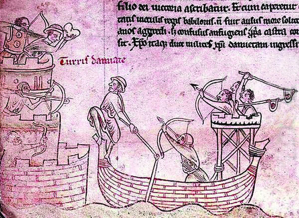 Штурм Дамиетты: цепоносец и фустибулярии на палубной надстройке.