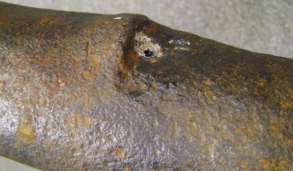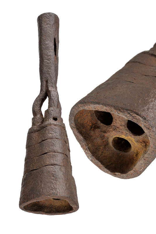 Еще одной интересной особенностью этого образца ручной артиллерии является запальное отверстие. Со стороны румпеля поверхность ствола образует небольшую выпуклость, задача которой защищать стрелка от обратного пламени при выстреле. Не скажу, что такое конструктивное решение уникально, но встречается довольно редко, а в варианте, когда подобная выпуклость образованна за счет деформации поверхности ствола - единично.