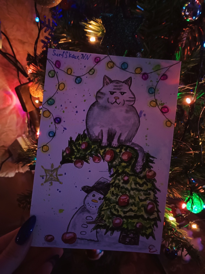 Предлагаю а вариант новогодних лёгких открыток, которые легко сделать акварелью 😍🥰