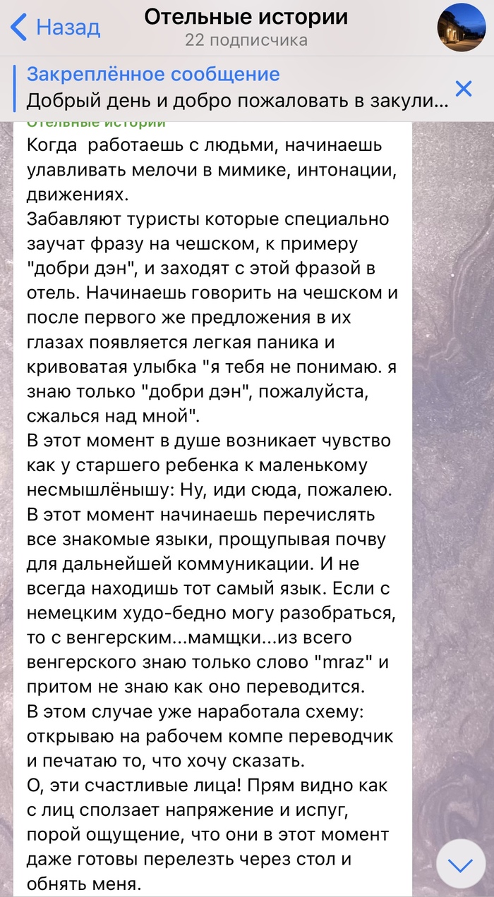 Пп: х*емес, лять… когда он из командировки возвращается, я уже даже немного расстраиваюсь. Опять по струнке ходить, и все прихоти выполнять. Кстати! Ооо! Ща прекрасное расскажу!