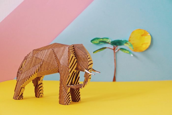 Нам повезло случайно открыть нишу. В Самаре есть дача архитектора Головкина, которую самарчане попросту зовут «Дача со слонами». Там есть весьма необычные слоны. Скульптором Самары была сделана стилизация слона в технике Low Poly. Деталей этой истории не знаю, ко мне попала готовая модель. Мы попробовали нарезать ее на слои, продумали систему внутренних креплений для сборки без клея. Так получились наши полигональные звери.
