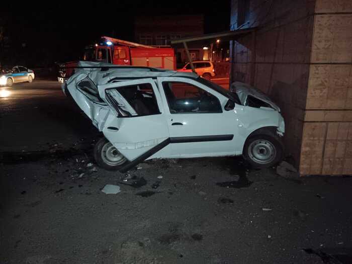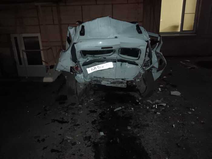 По неподтвержденным данным автомобиль двигаясь по пер Февральскому на Т-образном перекрёстке не справился с управлением и столкнулся со стоячим пустым автомобилем Рено, который в свою очередь отлетел в стену районной больницы.