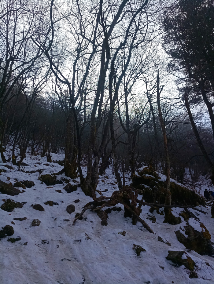 И мы пошли. Нас даже пыталась остановить хозяйка местной чифаньки, но мы видели цель, а не препятствия. Тем более, мы во всеоружии: телефоны с фонариками, на ногах свежекупленные снегоступы, в руках бамбуковые палки, а в животиках долгожданная пища богов. Нам нужно было пройти еще 7 километров и мы понимали, что вполне справимся с этим, потому уверенно шли дальше.