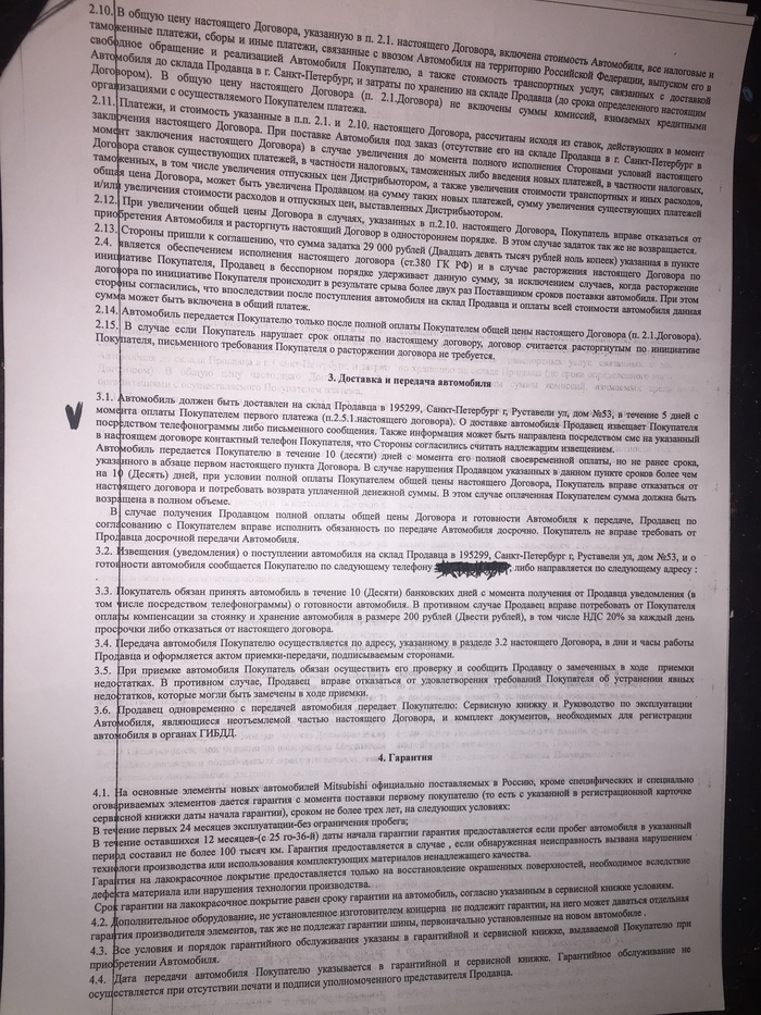 За эти 5 дней сделал копии всех документов (новый ДКП, рейд-ин, кредитный, страховка, чеки), пошел с этим к юристу. Вердикт юриста был такой: исходя текста договора, при наличии разногласий и невозможности продавца выдать авто по договору, договор просто расторгается, никаких штрафов себе они естественно не прописывают.