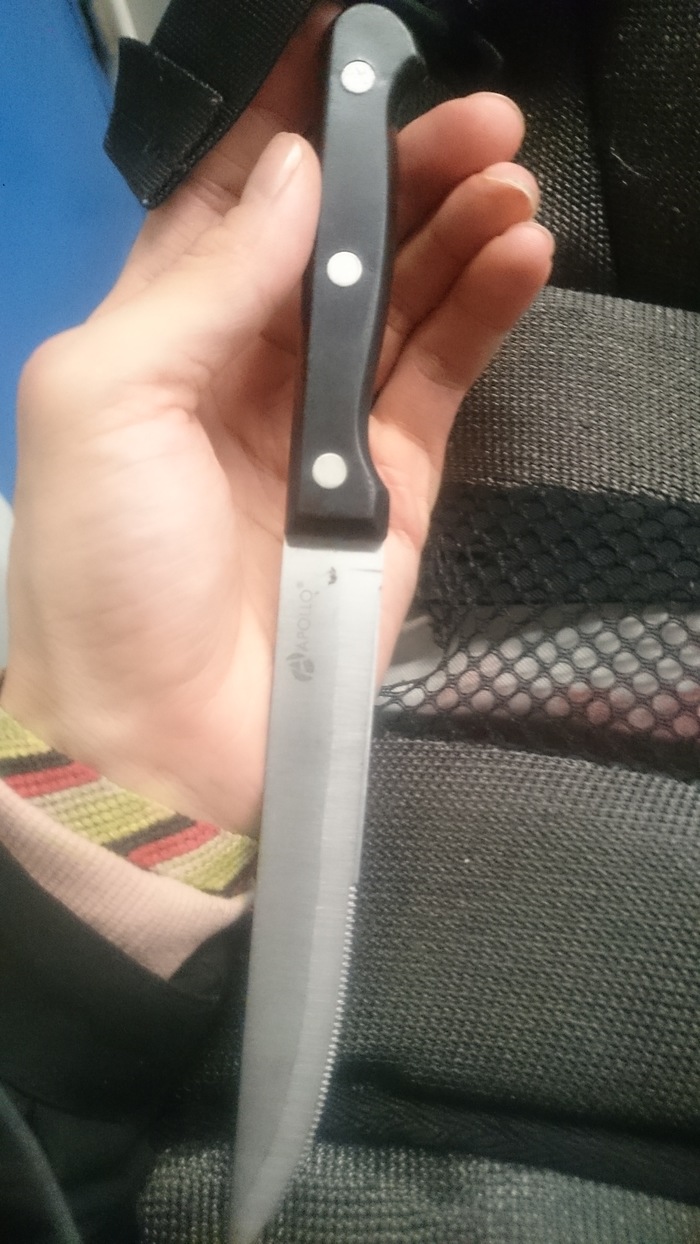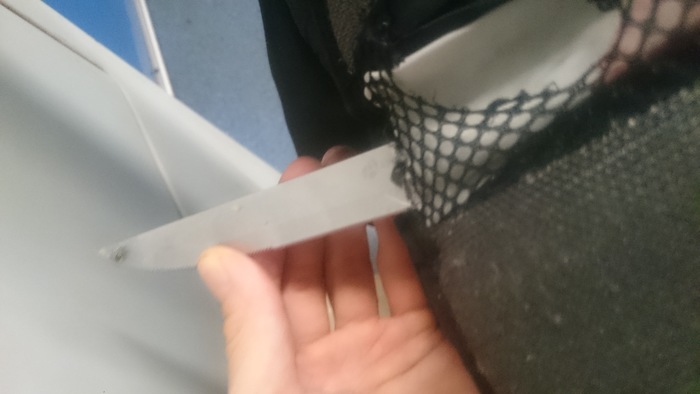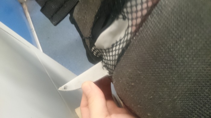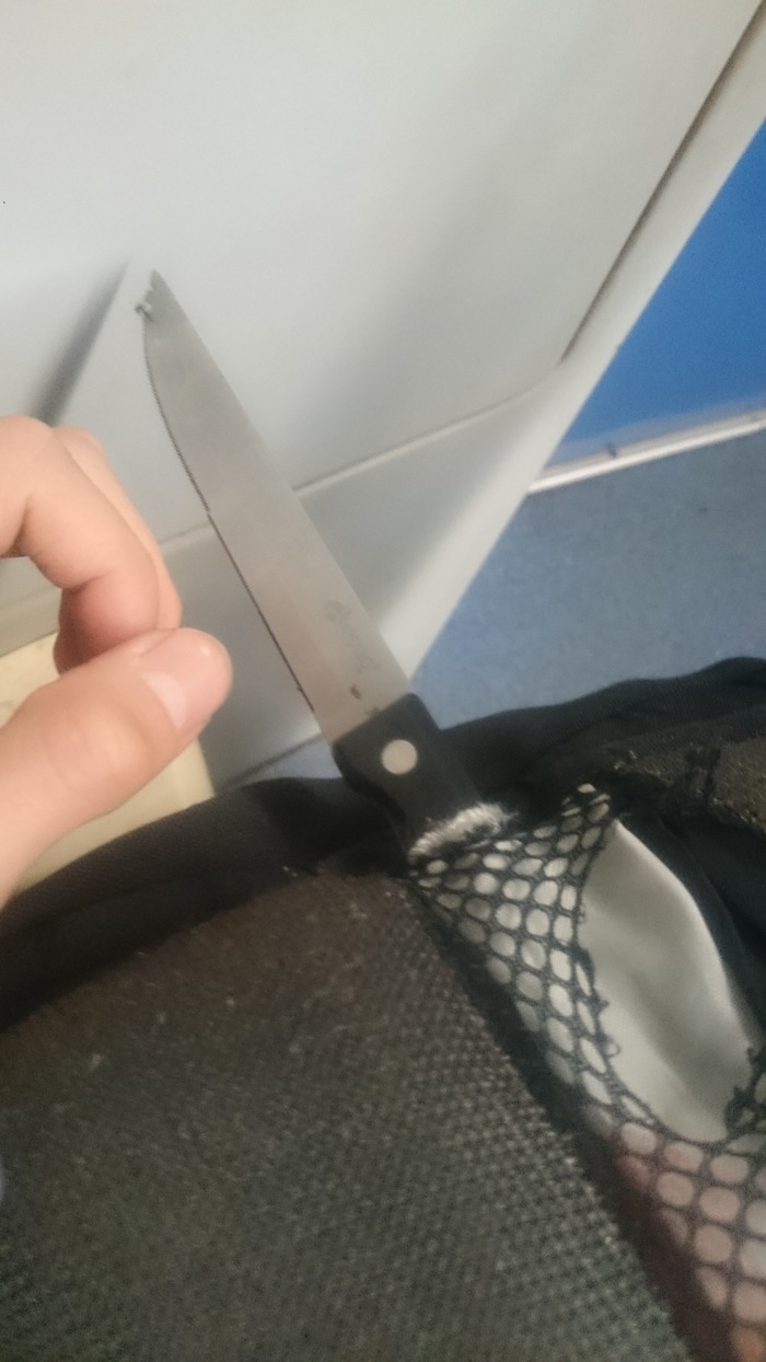 Собирались как то летом на пикник собрал всё что нужно в свой старый,но еще живой рюкзак. Взял с собой нож столовый резать колбасу хлеб. По приходу на место нож не нашёл. Весь рюкзак перетряхнул - пусто. Может забыл и забил на это. Еду в метро, сел рюкзак на колени положил и чувствую что то колется. Осматриваю рюкзак, а он у меня полупоходный со стойками для спины или как их там. Смотрю кусочек лезвия торчит. Епти! Это нож. Как он внутри оказался прям между подкладками. Решил так за лезвие вытянуть. Получилось как в фильме Чужой.
