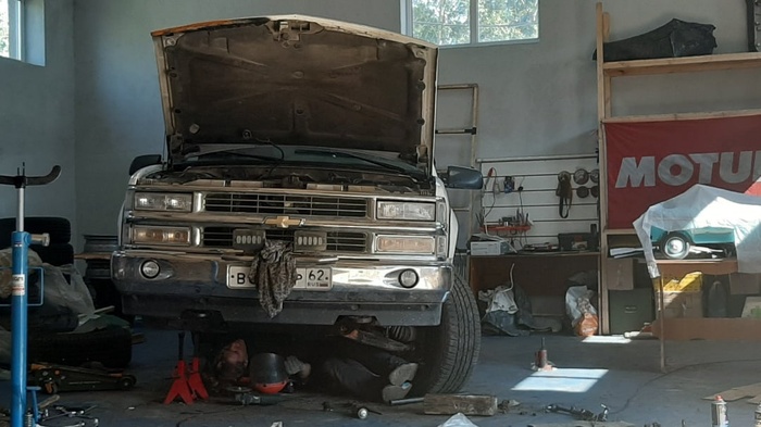 Насмотревшись на своего соседа, покатавшись на его suburban'e я понял что хочу тоже самое, но поменьше (разница у тахо и субы - полметра). Начался поиск авто и продажа лансера. В общем нашелся этот красавец в Московской области за 750 к. О как магнитит взгляды... А этот звук... (хотя по хорошему надо еще выхлоп перевать, но до этого руки пока не дошли)
