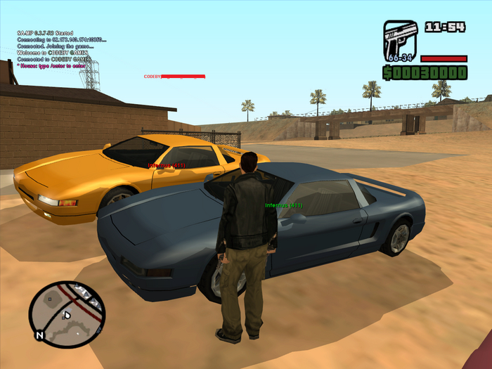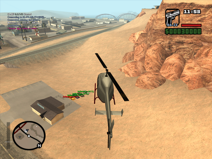 И так, скрипт готов. Скрипт активируется на клавишу F3. Сохраняем его в папку и заходим на сервер. Быстрее всего будет найти машину с воздуха, поэтому отправляемся в аэропорт Las Venturas и садимся в вертолет. Убеждаемся что наш скрипт работает, так как Infernus рядом с аэропортом прекрасно виден.