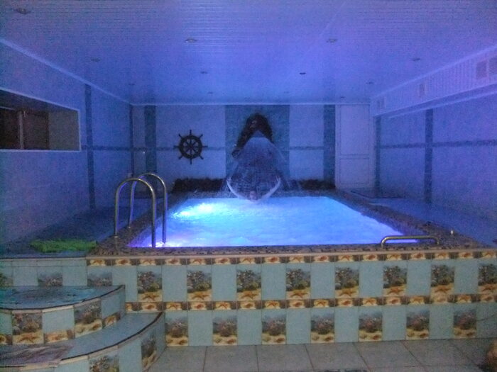 И бассейно-саунно- бильярдный комплекс, который мы там арендовали, был выше всяческих позвал. К примеру, мы никогда до этого не видели бассейна с подводной разноцветной цветомузыкой.