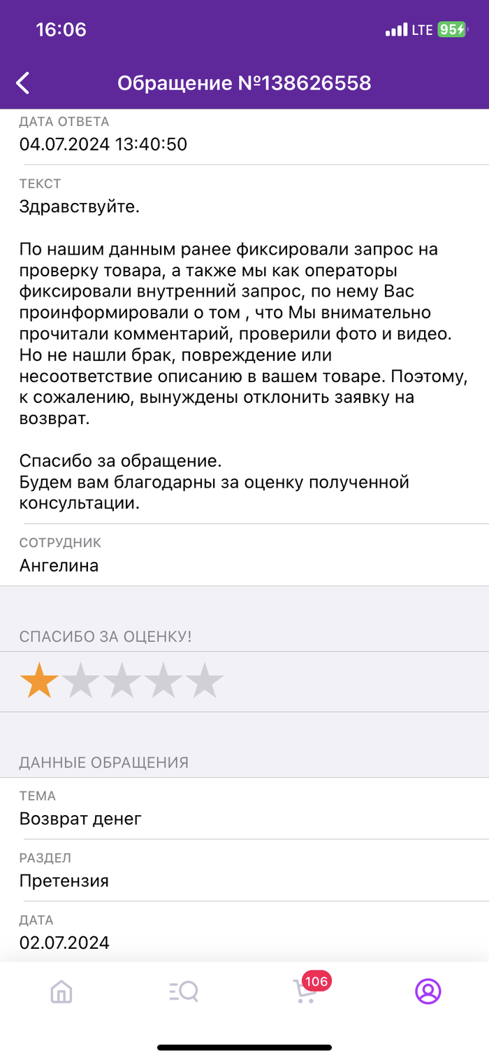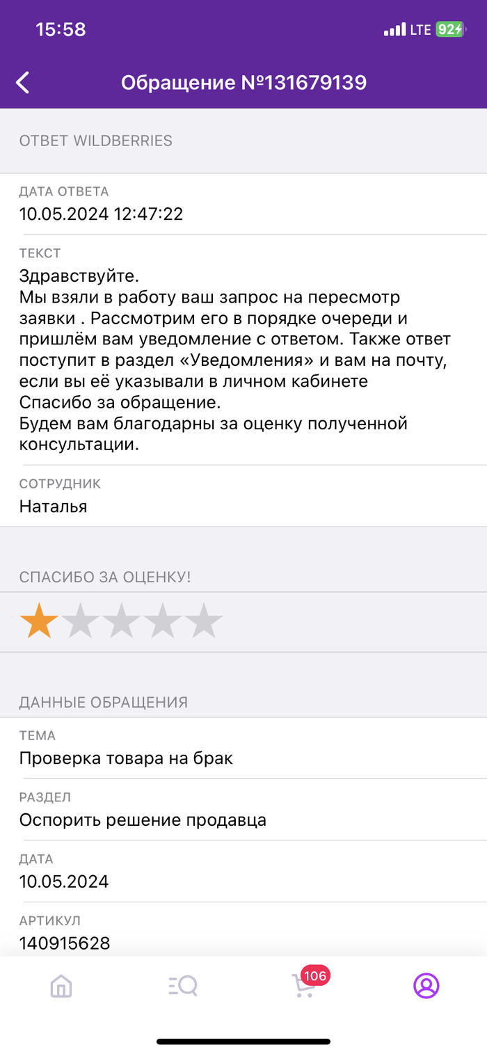 Создаем претензию на площадке с просьбой оспорить решение, либо вернуть денежные средства за счет ВБ!
