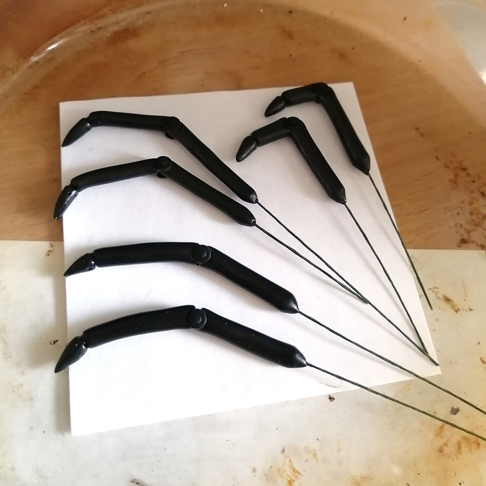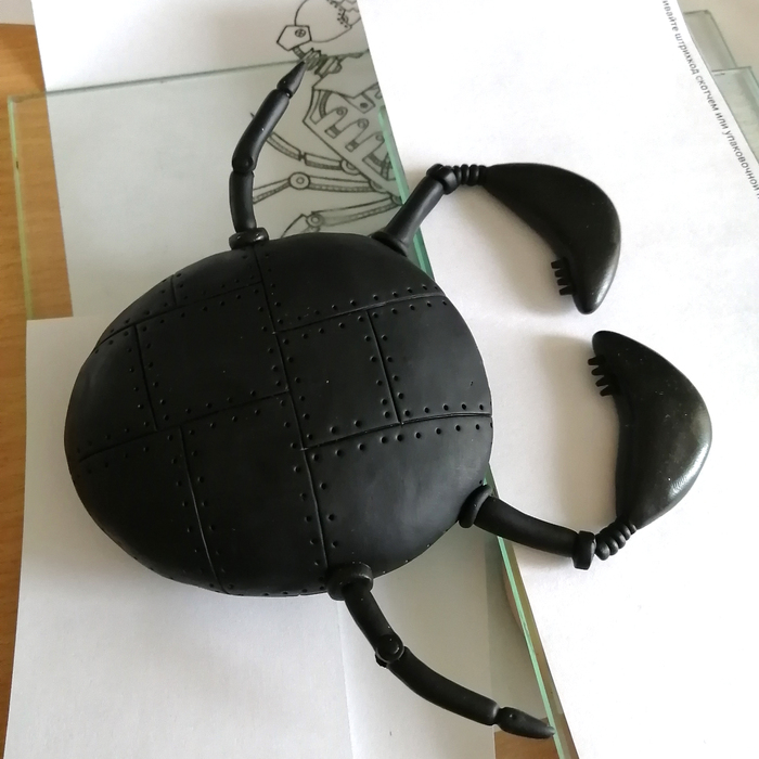 Не люблю клеить, поэтому стараюсь делать так, чтобы все припеклось хорошенько. Так что вставляю запеченные лапки в незапеченные шайбочки глины.