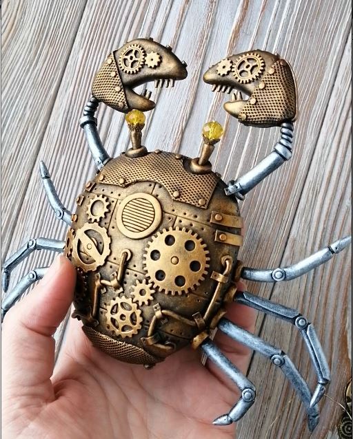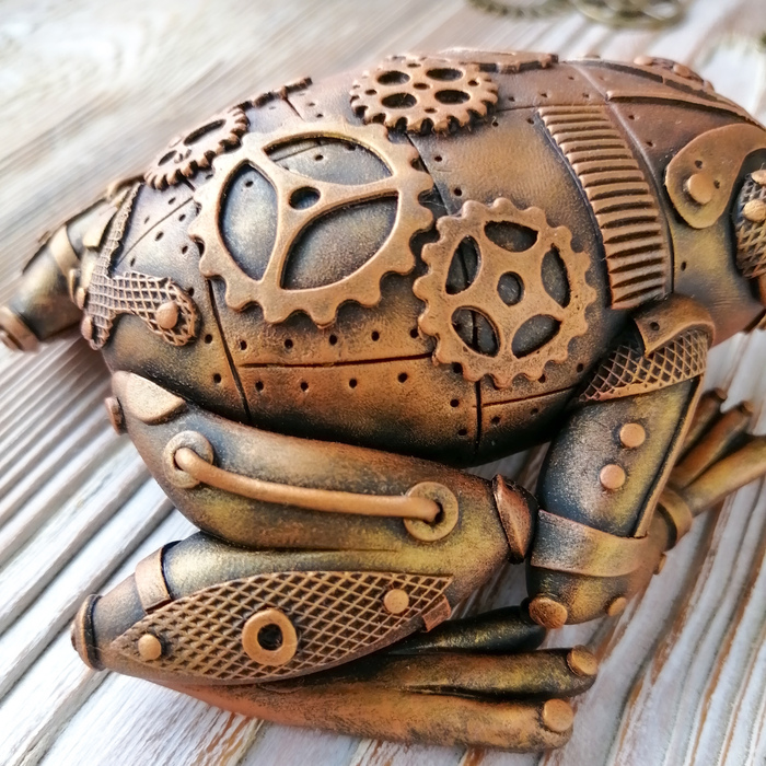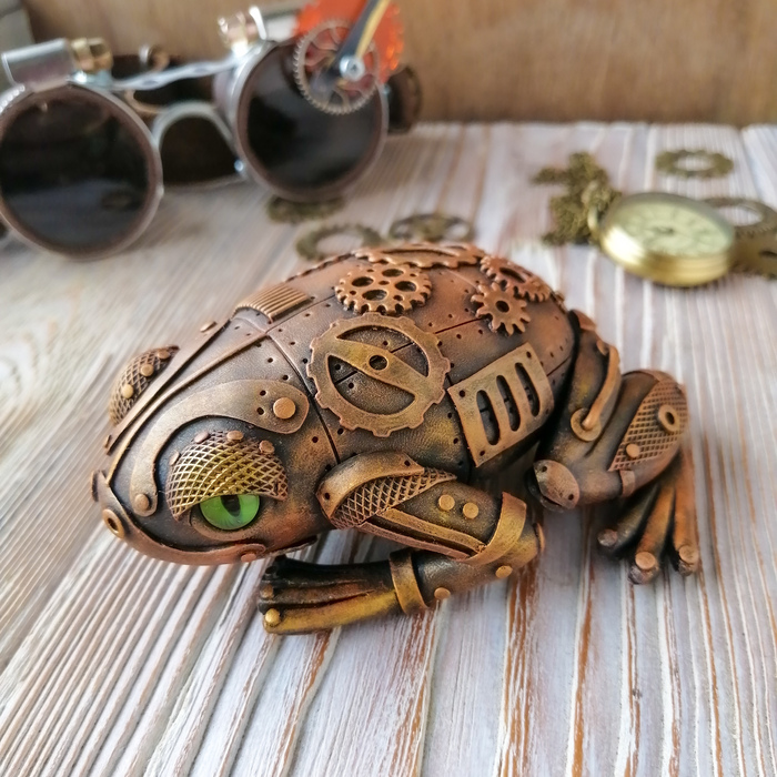 Есть у меня заказчица, которая собирает себе коллекцию елочных игрушек в стиле стимпанк и заказывает у меня, помимо шаров, еще и всяких существ к себе на елочку. Эта лягушка - одна из таких елочных игрушек.