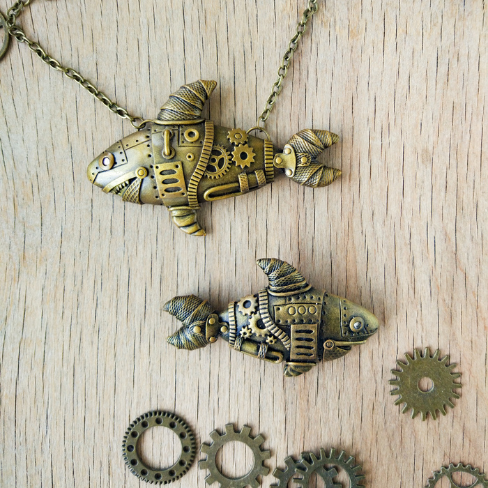 Материалы: фольга, полимерная глина, стекло (глаза), акриловые краски.