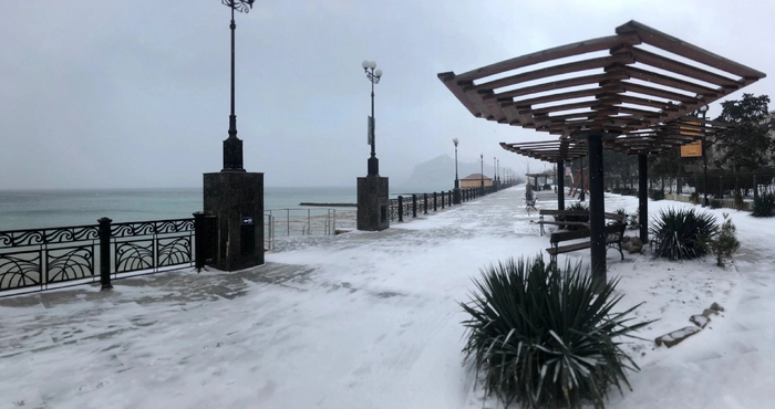 Снег в Крыму-это всегда неожиданно, особенно зимой)Первые два месяца выдались тёплыми, иногда даже жаркими.Пришло время немного помёрзнуть.