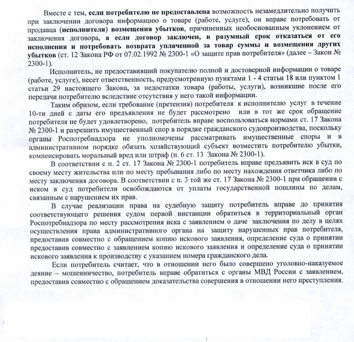Спустя пару недель никто так со мной и не связался, была написана претензия в РосПотребНадзор, на которую пришла отписка - мол, вы договор подписали, с условиями согласились, никто не виноват.