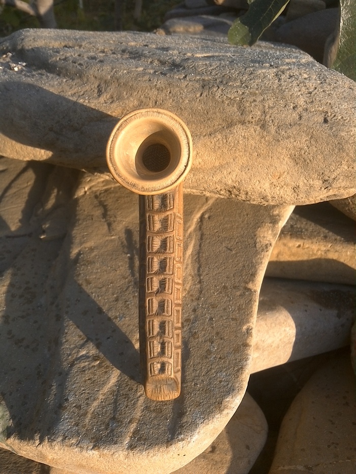 Но есть фотки конечного результата. Недочетов различных достаточно, буду над ними работать, но в целом результат меня устраивает. К сожалению, в какой-то момент откололась часть чаши - та, куда вставляется мундштук и пришлось немного переделать.