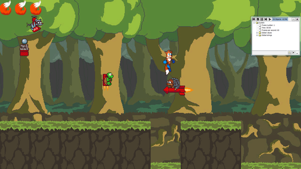 Эту игру я делал на движке Clickteam fusion 2.5 и многие баги которые просили исправить игроки, просто так не поддавались. А некоторые баги превратились в так называемые «Фичи» Например-нельзя атаковать, когда зажата левая кнопка.