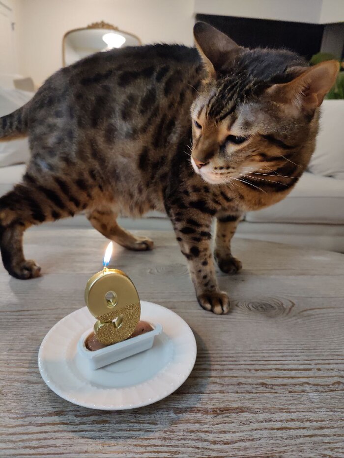 Отметили девять годиков мальчику. Пролетел полмира, познакомился с новой подружкой. Теперь любимая забава: молча взять кошку за глотку и держать, пока та не запищит и я не прибегу спасать. ЗЫ. Кастрирован, просто своеобразен.