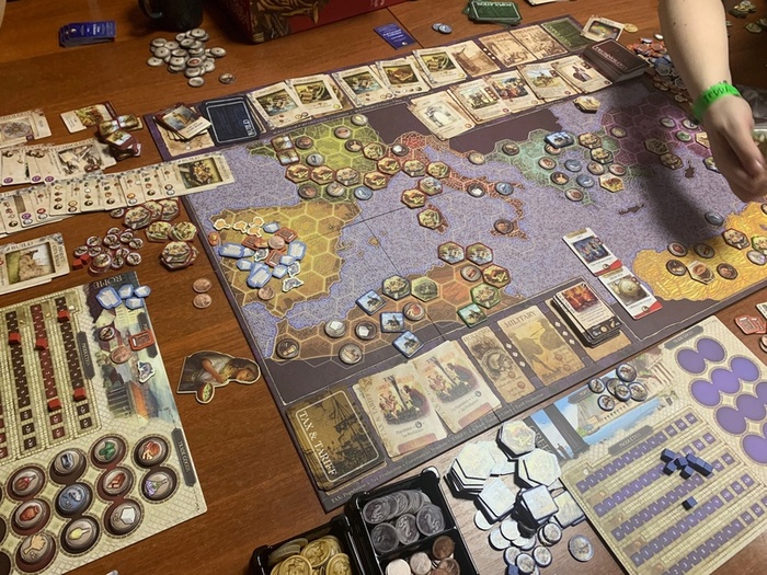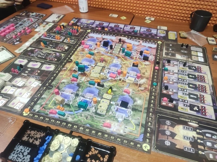 Здесь стоит подчеркнуть, что у меня игра в формате "Максимум хром", то есть со всеми выходившими на русском языке дополнениями и я сразу же принял решение играть полным фаршем, замешивать все возможные модули, за редким исключением. Поэтому в какие-то моменты я могу немножко путать базовые компоненты и то, что привносит в игру дополнение. Прошу понять и простить.